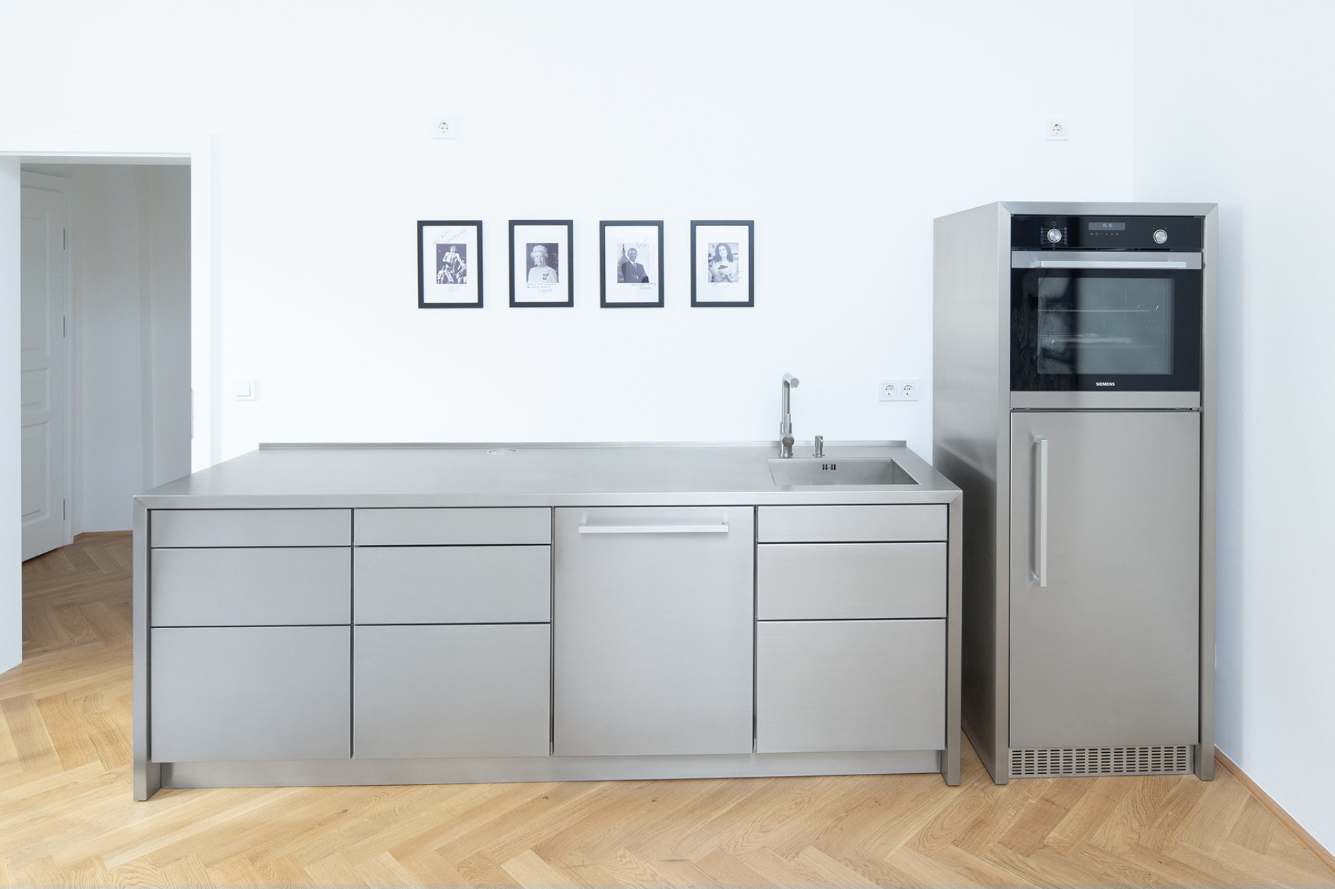 Ausgehend von Ihren Design- und Hygienewünschen statten wir Ihre Küche mit fugenlos geschweißten Edelstahl-Arbeitsplatten aus.