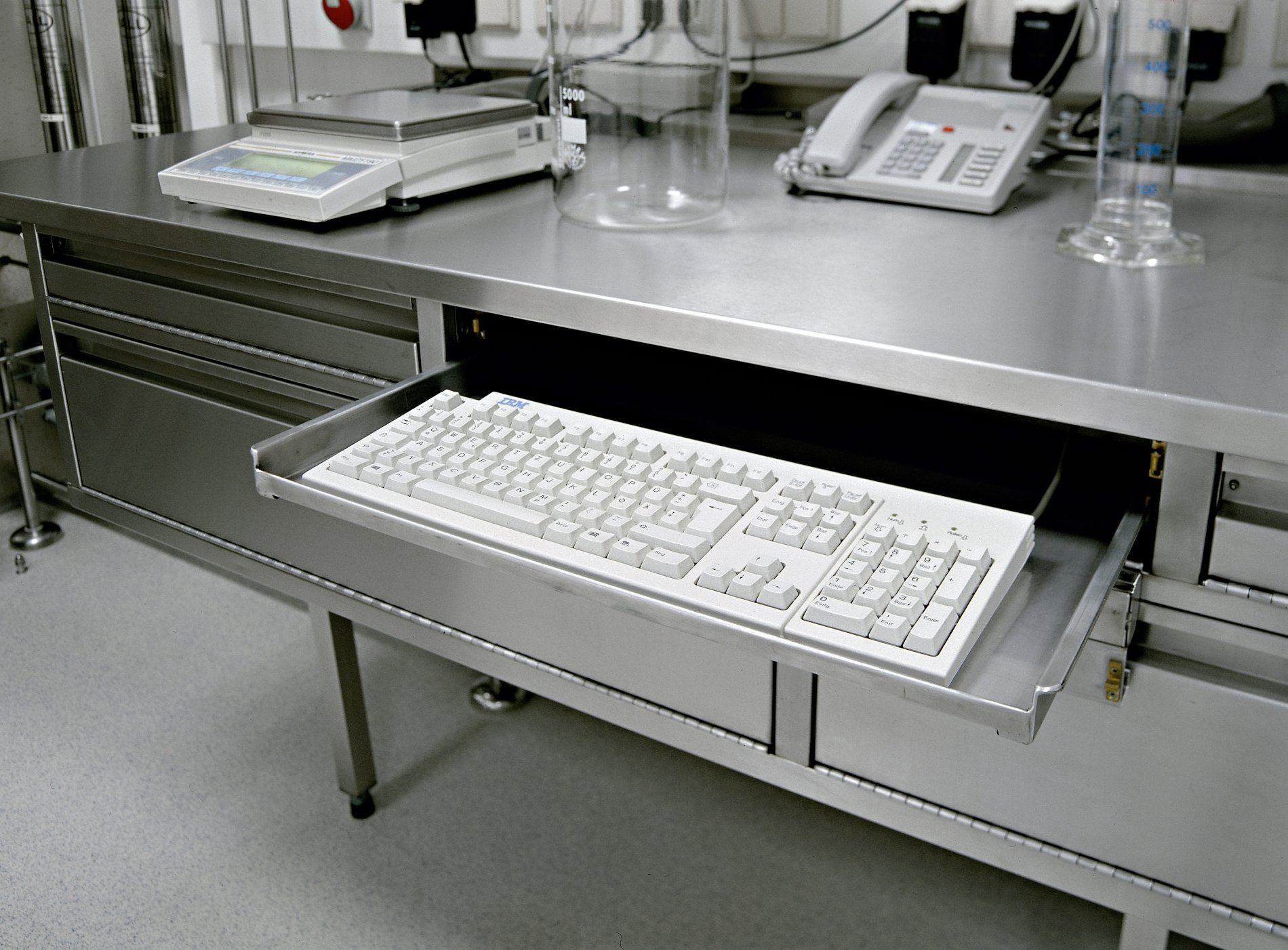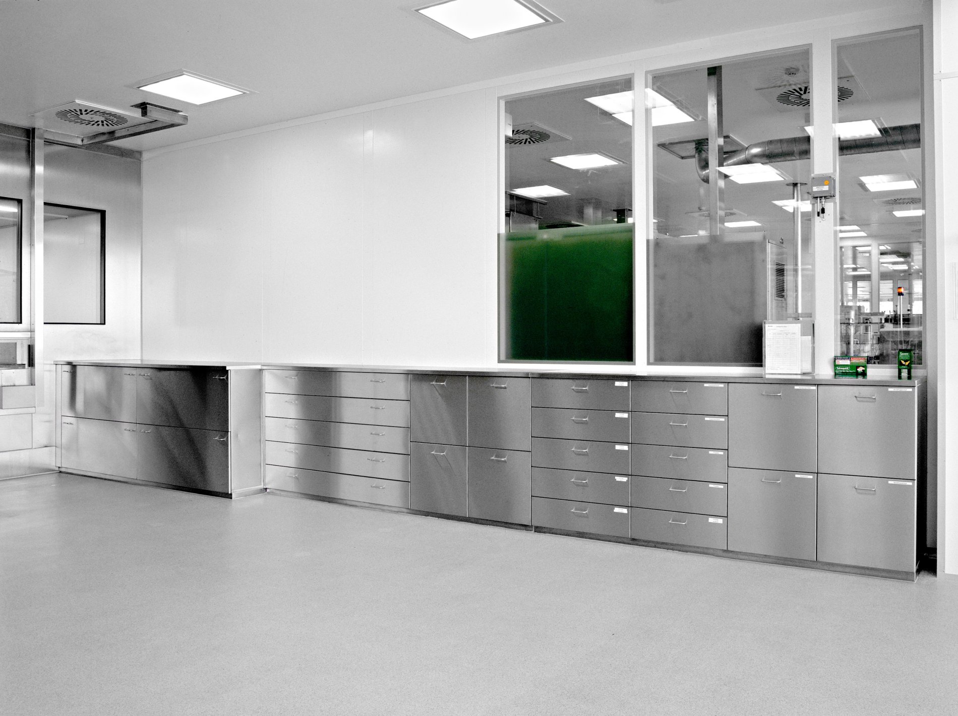 Die Spezialisten von METAGRO planen, fertigen und liefern seit vielen Jahren professionelle Lösungen für Baxter. Denn bei der Arbeit im Labor hat Hygiene oberste Priorität. Dies war auch die Anforderung an die Möbel für den Labor- und den Medikamentenproduktionsbereich. Die Größen der Laden wurden an die Maschinenkomponenten angepasst. Je nach Abteilung sind dann Bügelgriffe oder versenkte Griffleisten montiert worden. Im Laborbereich wurde eine Arbeitsplatte aus Corian gewählt. Alle Möbel wurden millimetergenau angepasst.