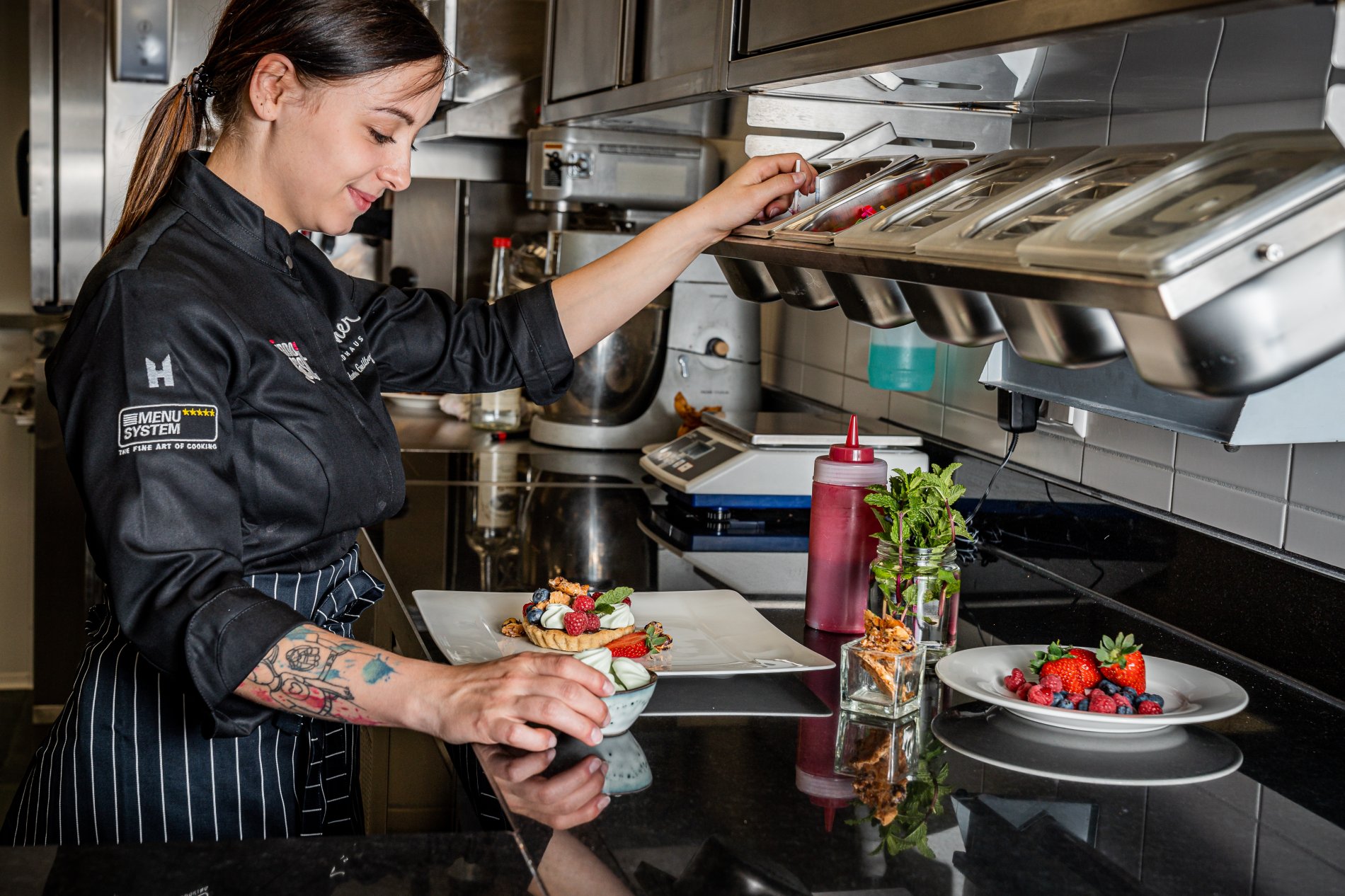 Das Hotelrestaurant kann sich ebenso sehen lassen: Gemäß dem Leitsatz „Fairness, Regionalität und Qualität“ glänzt die Karte des Restaurants mit unterschiedlichsten Leckerbissen, ganz gleich ob vegetarische, vegane oder eher klassische Gerichte wie Rind, Schwein oder Fisch. Unabhängig davon, für welche Speise man sich letzten Endes entscheidet, die sonnige Terrasse bietet das nötige Ambiente um das Bestellte bei einem Glas Wein angemessen genießen zu können. Es freut uns deshalb umso mehr, dass METAGRO gemeinsam mit der Firma Innogast die Küche des Hotelrestaurants mit Großküchenmöbeln ausstatten durfte.