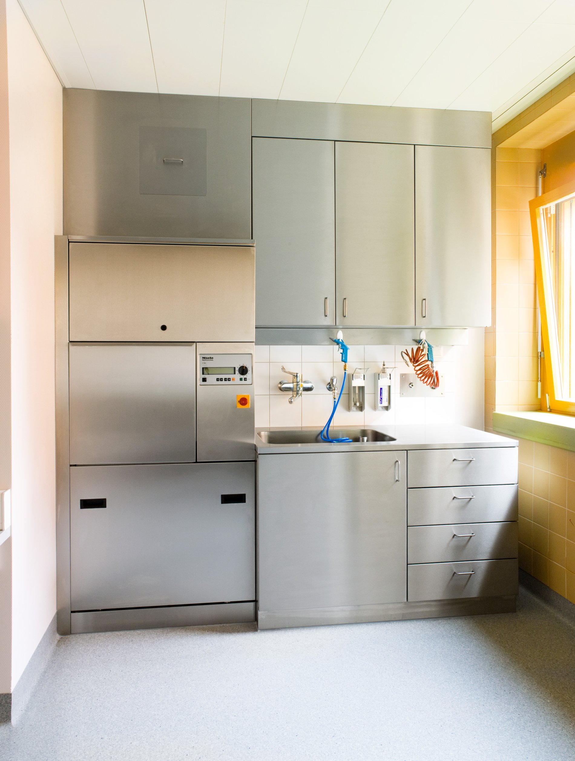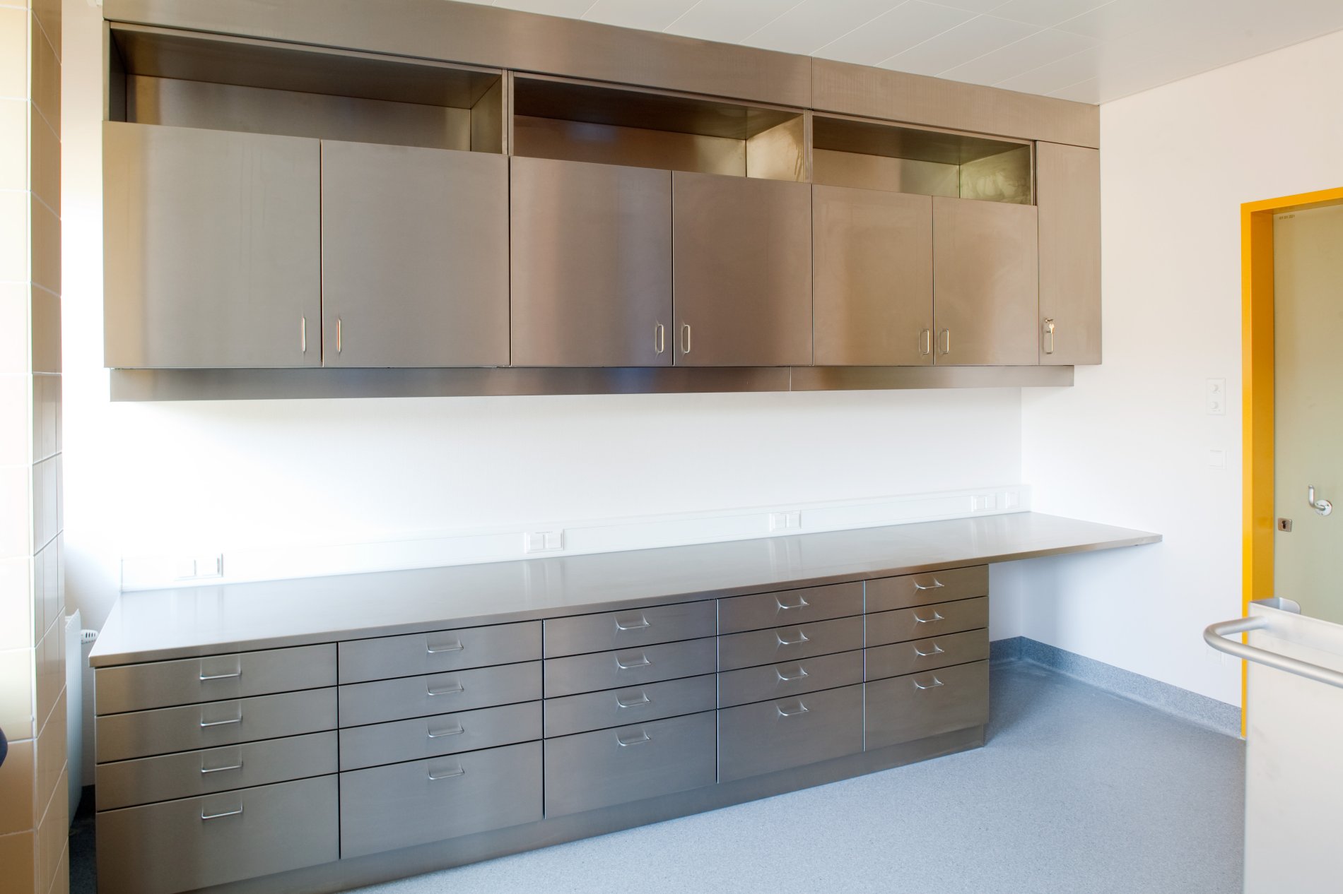Beim Umbau der Sterilabteilung wurden gemeinsam mit der Firma METAGRO die Labor- und Lagerraummöbel sowie die Regale definiert. Die optimale Anpassung an die vorhandene Raumsituation und an die verwendeten Lagerbehälter stellte bei diesem Projekt die größte Herausforderung dar. Die Techniker von METAGRO konnten eine flexible und langlebige Lösung erarbeiten. Umlaufend integrierte Dichtungen verhindern dabei das Eindringen von unhygienischen Schmutzpartikeln und gewährleisten so einen zuverlässigen Spitalsbetrieb.