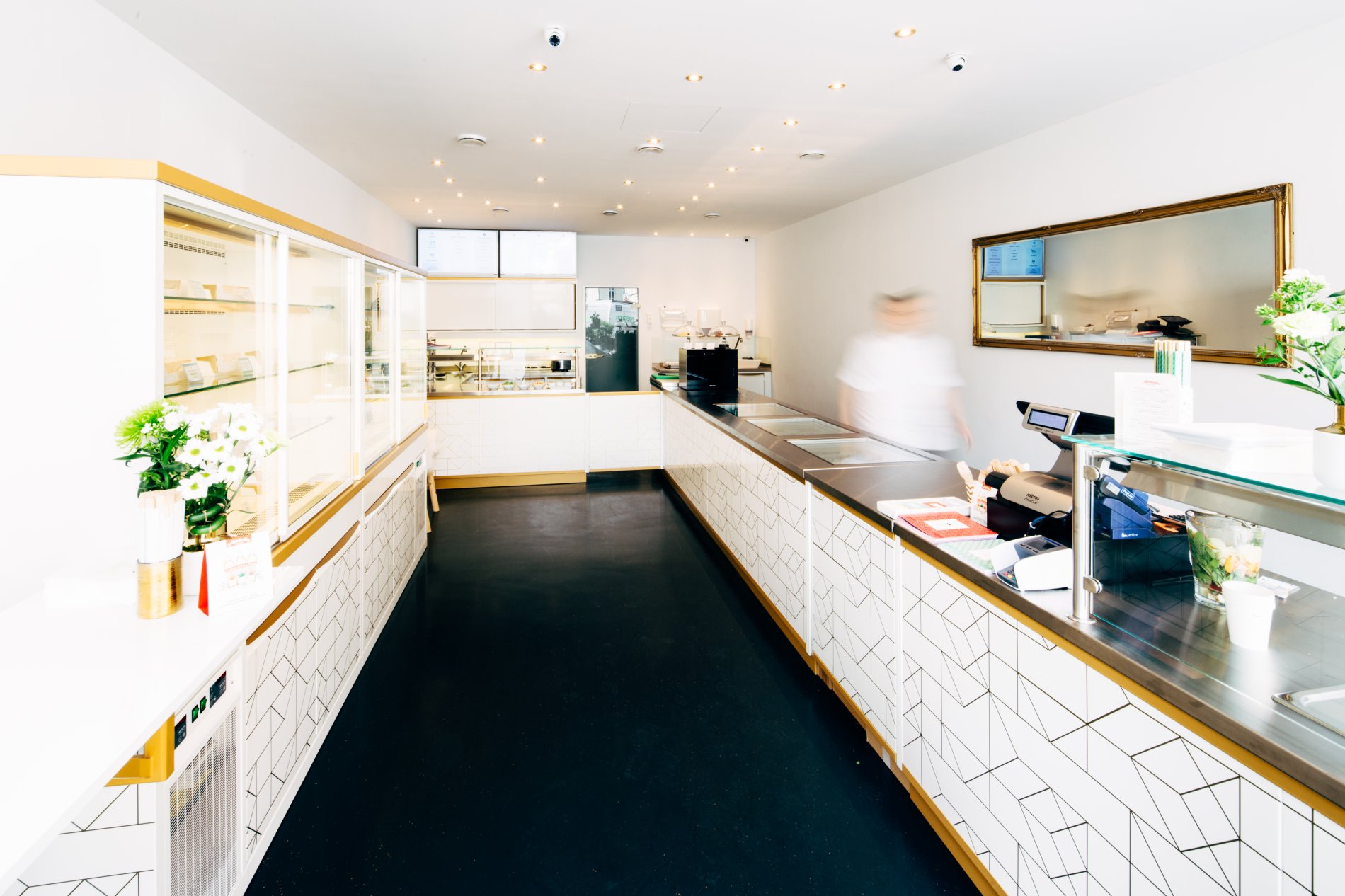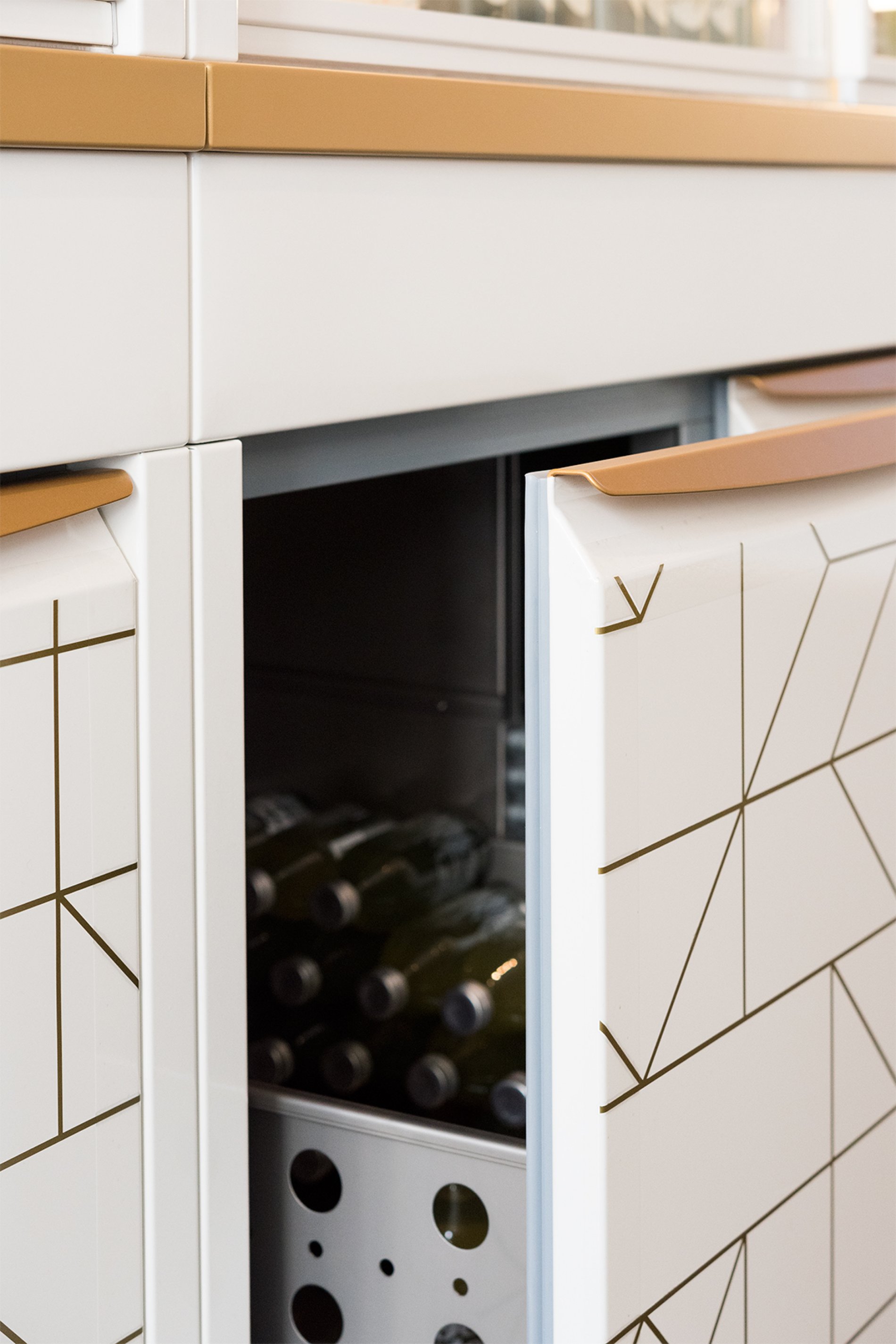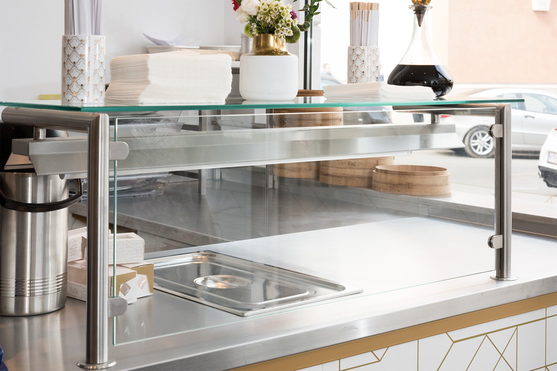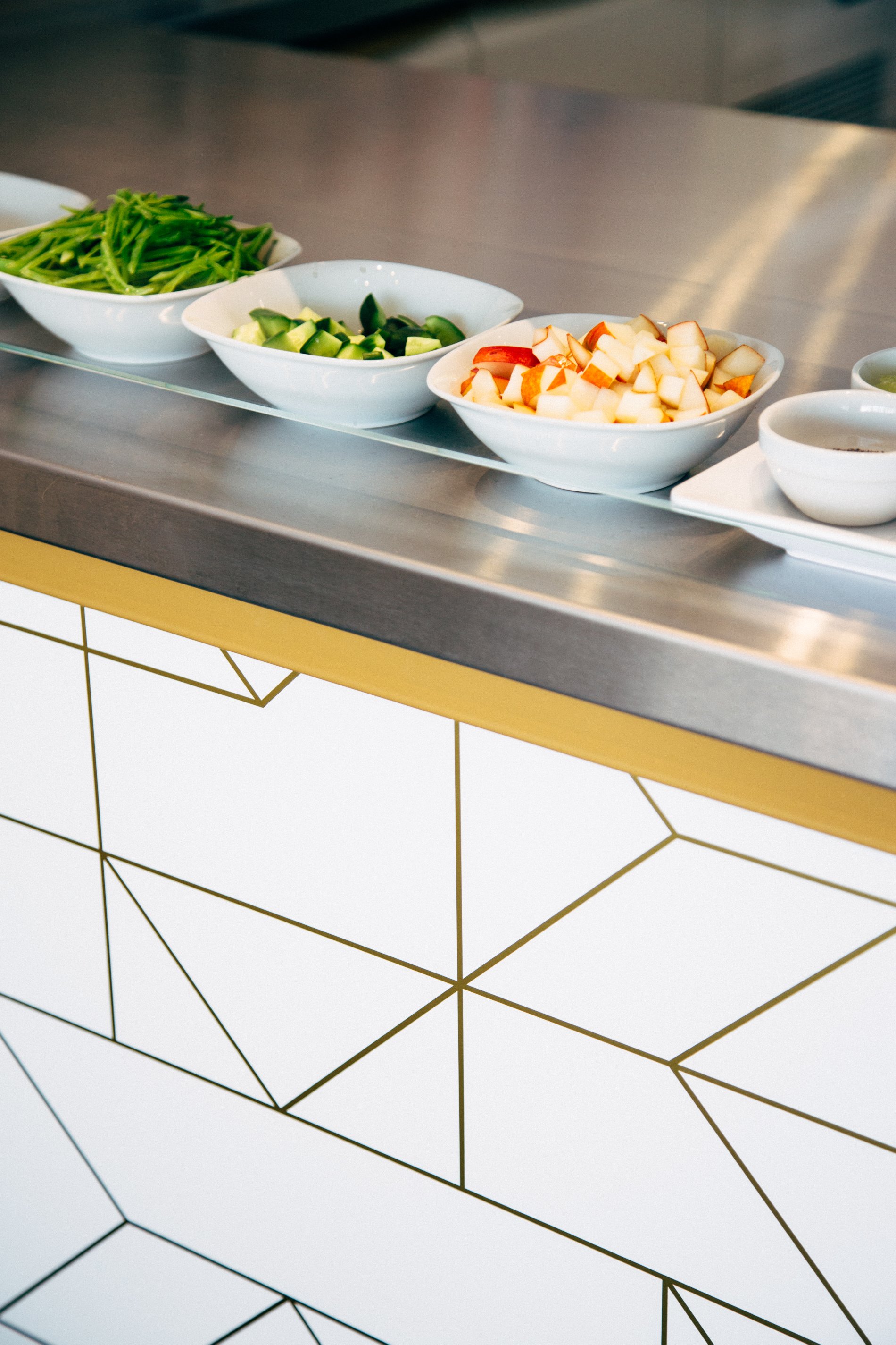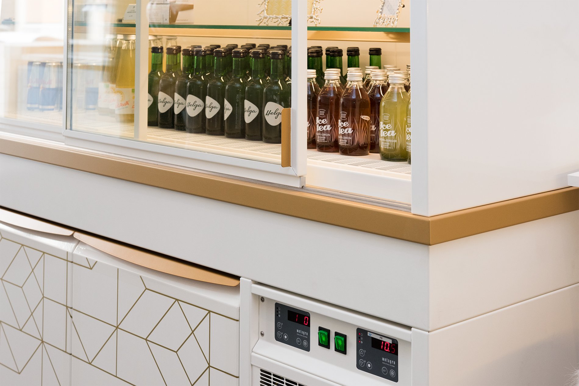 Besonders auffallend sind die weiß und gold beschichteten Edelstahlfronten, die nachträglich mit einem Muster, das ein wichtiger Bestandteil der Corporate Identity des Lokals ist, foliert worden sind. Chefin Anna Kleindienst ist zufrieden: „Die Zusammenarbeit mit der Firma Metagro lief von Anfang an reibungslos ab. Frei nach dem Motto “Geht nicht, gibts nicht” waren sie bemüht, all meine Ideen und Spinnereien bis ins kleinste Detail umzusetzen. Besonders schön finde ich, dass Metagro ihre Arbeit und ihr Produkt der Marke Miss Maki angepasst haben und nicht umgekehrt.”