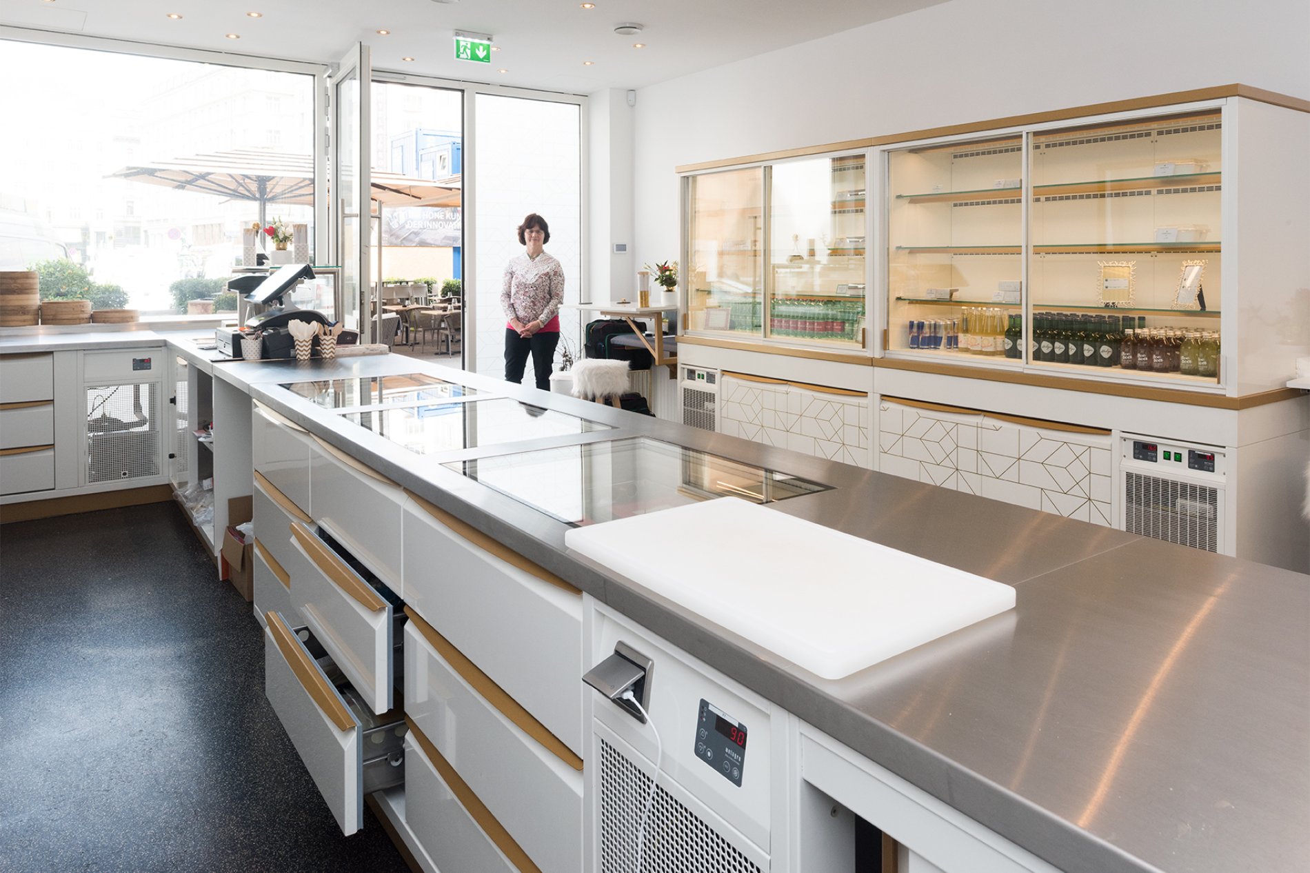 Anna Kleindienst ist nicht nur Besitzerin der Liliputbahn im Prater und auch Co-Managerin der Reitsportanlage „Equestrian Centre Austria“, sondern hat sich 2017 am Hohen Markt in Wien mit dem Lokal „Miss Maki“ auch den Traum eines originellen Take-away Lokals erfüllt. Bei „Miss Maki“ wird schnelles Essen mit hochwertigen, gesunden Zutaten und österreichischem Fisch serviert. Für das Culinary Design holte sie den weitgereisten Koch Stefan Trautsch, mit der Produktion der Küchenmöbeln wurde METAGRO Edelstahltechnik beauftragt.