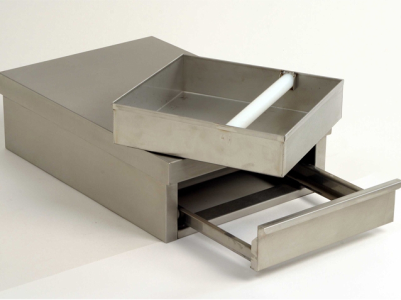 Lade ausgestattet. Die herausnehmbaren Ladeneinsätze sind an den Kanten dicht verschweißt und zur Lärmdämmung auf der Unterseite