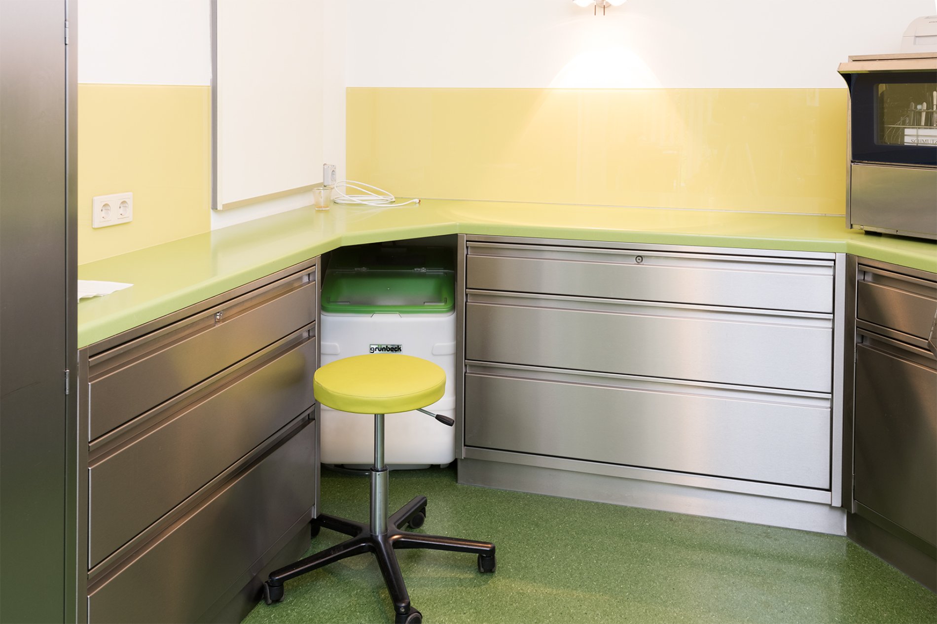 Die porenfreie Oberfläche ist leicht zu reinigen und damit besonders hygienisch. METAGRO führt Labormöbel mit aufschlagender Bauweise aus, d.h. zwischen den Schränken ist lediglich eine kleine Schattenfuge. Doch erst die richtige Verarbeitung von Edelstahlblech schafft die optimalen hygienischen Voraussetzungen bei Hygienemöbeln. Alle Oberflächen sind desinfektionsfest, UV- und klimabeständig. Auf Wunsch fertigen wir Ihre Möbel auch mit einem dichten Innenkorpus – jede Schweißnaht, die unser Kunde dicht haben will, wird bei uns auch penibel auf ihre Dichtheit geprüft.